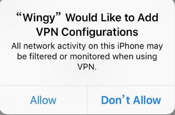 9. 接下来系统会询问是否允许增加VPN配置,点击“Allow”即可